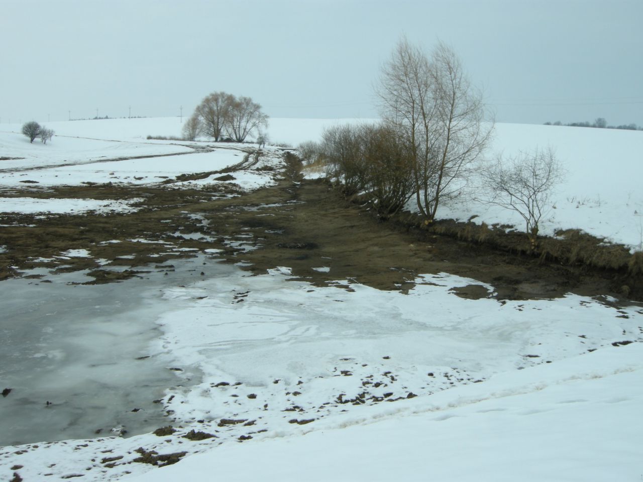 Foto z dokončeného odbahnění poldru, které probíhalo od podzimu 2016.